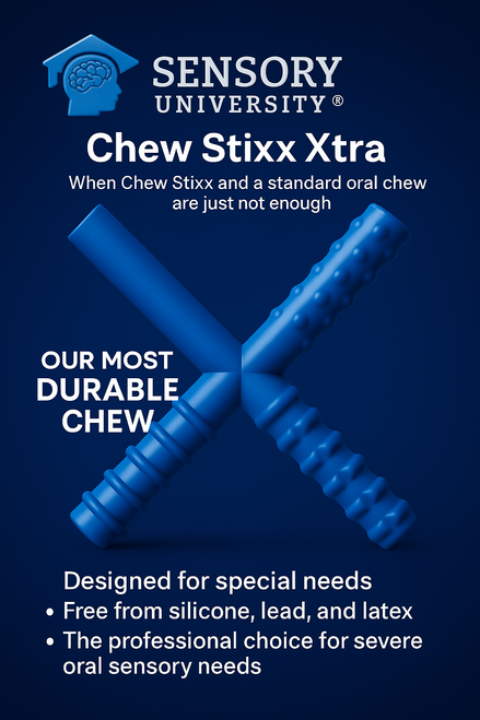 Quick view Sensory University | sku: CSX106 Chew Stixx XTRA Multi Textured Chewable Fidget-8 Available Flavors Chew Stixx® Xtra – Multi-Textured Oral Motor Chew When regular sensory chews just aren’t enough… Chew Stixx Xtra steps in. Chew Stixx® Xtra is our toughest, longest-lasting oral motor chew, designed specifically for extreme... MSRP: Now: $12.99 Choose Options Compare 1 2 3 4 5 6 Next 1 2 3 4 5 6 Next Compare Selected